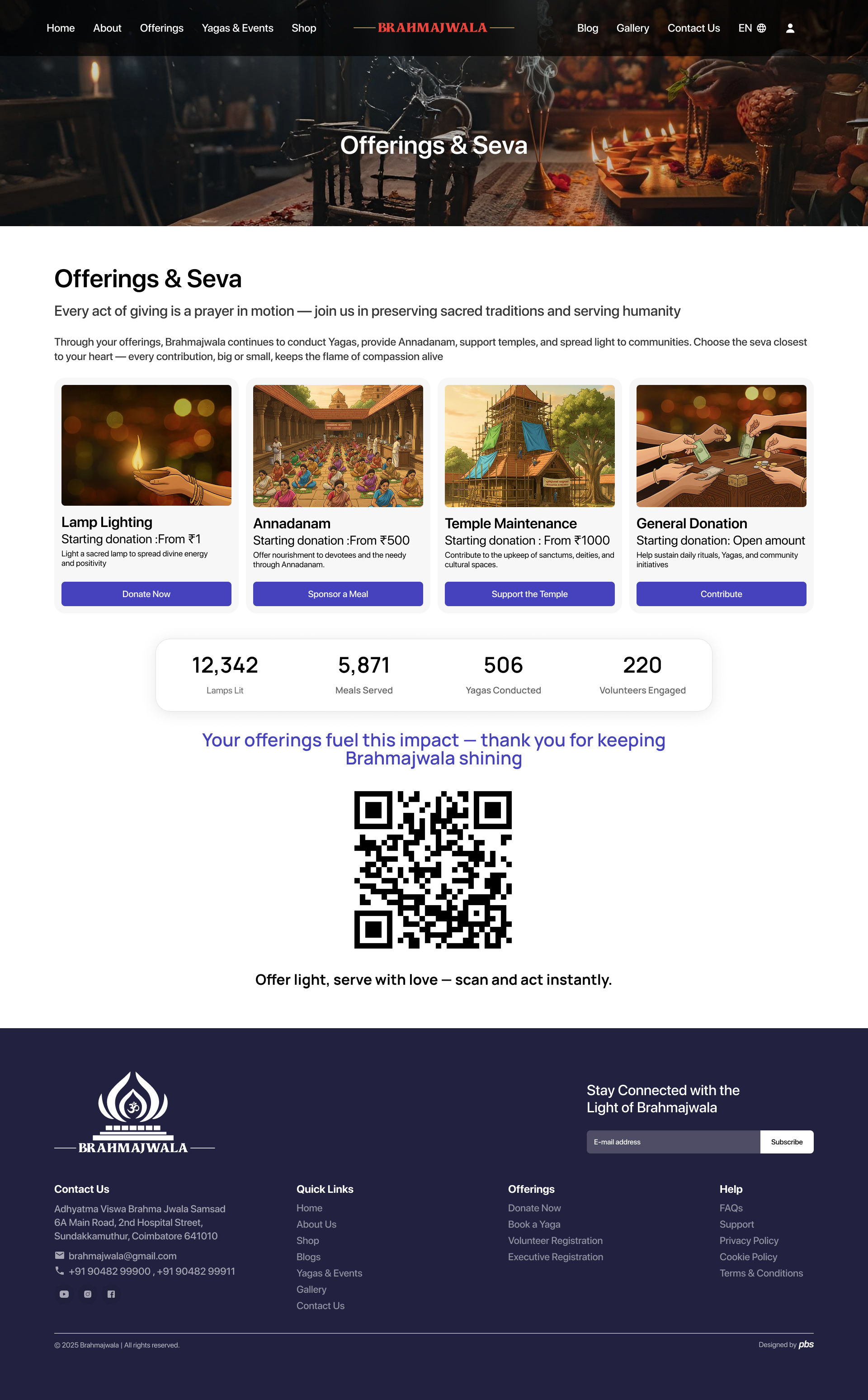 Join Brahmajwala in spreading light through Annadanam, Yagas, and cultural offerings