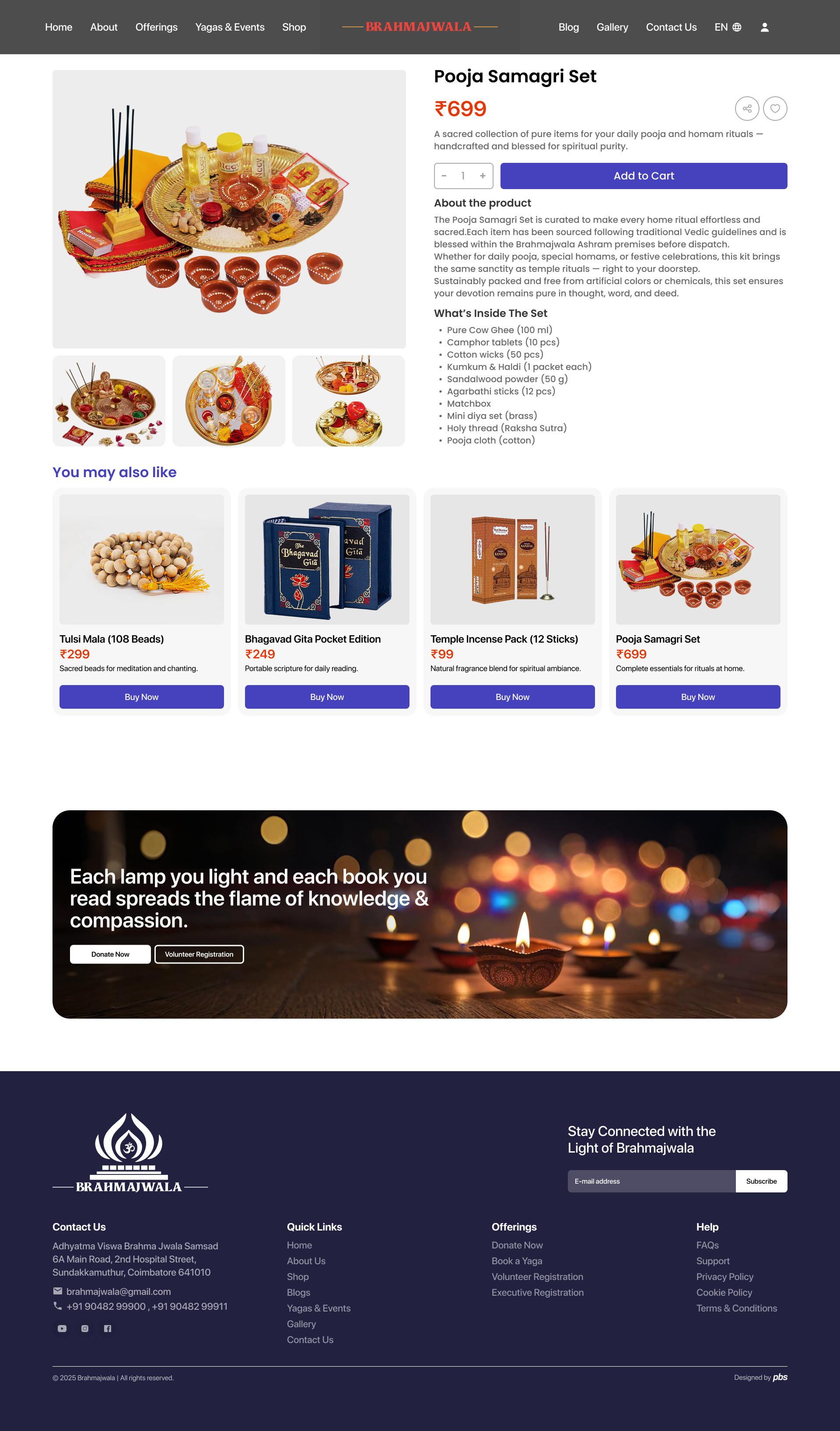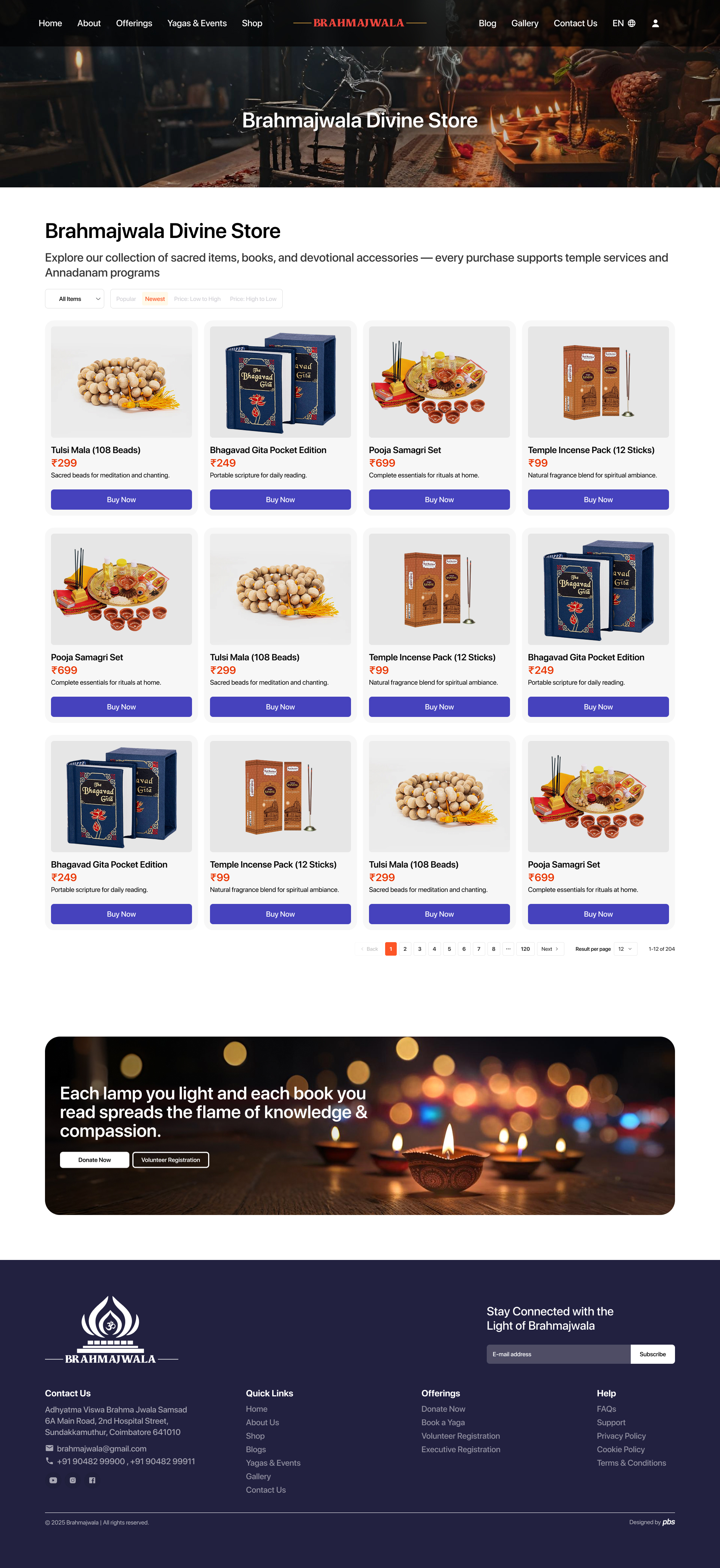 Explore our collection of sacred items, books, and devotional accessories — every purchase supports temple services and Annadanam programs